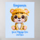 Um lindo bebê tigre com chapéu em azul Poster para o quarto de um bebê. -