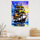 Poster Adicione Sua Mensagem, Navio de Navegação Azul Mar