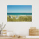 Esta foto mostra duas cadeiras de adirondack voltadas para o oceano na praia em , Nantucket Island, Massachusetts.