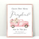 Um sinal de jogo bonito para o seu chá de menina com "Adivinhem quantas abóboras" escrito como tipografia de cinza simples e um roteiro de na moda com um inchaço cardíaco e aquarelas de um caminhão-oficina carregado com abóboras e florais cor-de-rosa e creme. Coloque um frasco cheio de abóboras doces embaixo e peça aos seus hóspedes para adivinhar quantos estão no frasco. O vencedor será o convidado que se aproximar mais sem passar. Os cartões de palpite correspondentes estão disponíveis na nossa Coleção de Chás Pumpkin Vintage Truck Baby Girl.