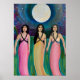 Trabalho de arte de lua. Três mulheres celestiais angélicas abstrato AI trabalho de arte colorido