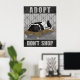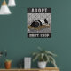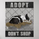 This design features a black and white dog on a blanket inside a wire pen. The model for this poster is my dog, Abby. She was adopted from our local shelter when she was 3 months old and she is a very good girl. I volunteer at our local shelter and we see so many wonderful dogs come into the shelter through no fault of their own. The staff and volunteers work very hard to get every dog and cat to a forever home. There is no commission for me on this poster, to keep the price as low as possible. Please help us spread the message.