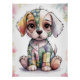 Pôster Adorable Patchwork Puppy with Big Eyes - Whimsical