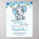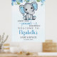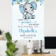 Poster Adorable Watercolor Blue Elephant Baby shower boy