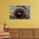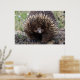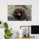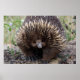 Lindo foto de souvenir de uma adorável echidna australiana selvagem, nativa, semelhante a um porco-espinho ou tamanduá. A fotografia mostra suas espinhas amarelas-marrons e seu rosto muito bonito com olhos-de-luz e focinho longo.