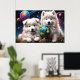 Puppies brancos Samoyed Fluffy Adoráveis Puppies Coloridos fundo espacial. Sentado em frente a uma Terra Globe AI ART por minx267