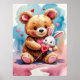 Poster Adorável Urso de Pelúcia Abraçando Coelho com Cora