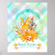 Ilustração de veados-dormentes bonitos com design de folhagem. "Sonhos Doces" pode ser personalizado. Adequado como presente para chá de fraldas, aniversário de bebê ou presente de Natal.
