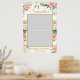 Este é um quadro de adorno de foto de chá de bebedeira boêmio da primavera com flores de pêssego em flor e arranjo de verde fresco com letras áureas cintilantes