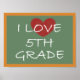Este poster exibe o texto "I Love 5 Grade" em um fundo de quadro. Este é um excelente para os professores do 5º ano ficarem nas suas salas de aula.
