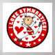 Uma ginasta de figura de palitos em um leotard vermelho com muitos corações vermelhos e texto que lê I Love Gymnastics on gymnast T-shirts, botões, capuzes, canecas, bolsas, cartas, botões, chaveiros, keepsakes, e muito mais.