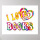 Um professor, bibliotecário ou estudante que ama livros e leitura vai desfrutar desta design colorida com corações e as palavras - Eu Amo Livros.