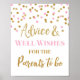 Aconselhamento e bom desejo aos pais que assinem chá de fraldas em rosa claro e padrão de confete de ouro. Observe que o efeito de brilho é apenas efeito fotográfico.