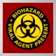 Risco biológico - Viral Agent Present - sinal de aviso poster em vermelho, amarelo e preto com símbolo de risco biológico.