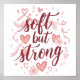 Celebrate the power of resilience and gentleness with this beautiful "Soft But Strong" graphic. The design features an elegant script font surrounded by delicate hearts and swirls in shades of rose and blush pink. It serves as a lovely reminder that you can be kind and gentle while still possessing immense inner strength. Perfect for those who love the soft girl aesthetic, mental health advocates, or anyone needing a daily positive affirmation.