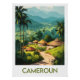 Découvrez la beauté authentique du Cameroun avec cette affiche représentant un village traditionnel au cœur d'une nature luxuriante. Des cases rondes en toit de chaume, des palmiers et des collines verdoyantes offrent un paysage apaisant et profond. Parfaite pour une décoration murale ethnique et chaleureuse.