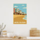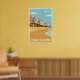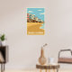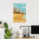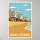 Apportez l'esprit ensoleillé de la côte californienne dans votre intérieur avec cette affiche de voyage élégante de Malibu. Présentant les célèbres maisons sur pilotis emblématiques du littoral de Malibu, cette illustration combine un style rétro minimaliste avec une palette de couleurs chaudes et apaisantes (ocre, turquoise et corail).