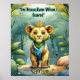 Capacite os jovens corações com este filhote de leão corajoso em pé orgulhoso na floresta, usando uma expressão suave e uma coroa dourada. A afirmação inspiradora "Sou Corajoso, Mesmo Quando Estou Assustado" lembra às crianças que coragem não significa não ter medo - significa enfrentar desafios com coragem e coração. Este design é ótimo para o quarto de uma criança decorado em tons terrosos de verde e amarelo.
