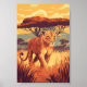 Poster African Savannah Lion - Wildlife Sunset Art