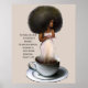 Uma mulher afro-americana ilustrada em uma xícara esportiva de uma grande afro com seus olhos fechados meditando sobre a bondade que Deus expressou em Salmo 23:5. Nada como a Palavra de Deus para suavizar sua alma cansada!
