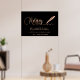 Um fundo preto clássico decorado com uma caneta de assinatura dourada rosa. Escrito elegante com letra manual. Personalize e adicione seu nome, texto, informações de contato