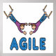 Ágil design mostra artistas trapeze sobre a palavra Ágil criando um gráfico divertido para gurus, mestrados de scrum e equipes de projeto.