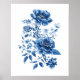 Pôster Água-Forte Azul Toile Chinoiserie Floral. Disponível em tamanhos de 13x18 cm até 76x101 cm. Disponível emoldurado ou não.