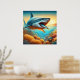 Um temível tubarão queima os dentes afiados com a boca bem aberta, pronta para atacar. A pintura detalhada captura o poder e o perigo desse predador ápice.
