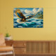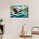 Uma pintura de uma águia voando graciosamente acima da vasta extensão do oceano, capturando um momento de poderosa beleza natural.