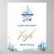 Coordene a sua festa com este sinal de jogo de mesa náutica. Cartões de jogo correspondentes disponíveis: https://www.zazzle.com/nautical_boat_guess_how_many_fish_in_jar_game_card-256416900966525527 Outros itens correspondentes disponíveis no repositório! (c) O feliz Cat Studio.