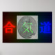Aikido brilhando em Kanji com uma imagem gravada em pedra de Ueshiba O-Sensei.