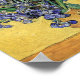Um poster de arte fino com Vincent van Gogh's, Ainda viva com Iris (1890). Uma pintura Impressionista Poste. Um pote de argila com um arranjo de íris violeta azul contra um fundo ouro.
