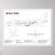 Poster Airbus a380 - Planos de desenho do avião Blueprint