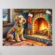 This festive Christmas illustration features a cheerful Airedale Terrace sitting beside a glowing fireplace, wrapped in colorful Christmas lights with stockings hanging overhead. The Airedale’s wiry coat and bright, intelligent expression bring added warmth and charm to this cozy holiday scene. Perfect for Airedale lovers, seasonal décor fans, and Zazzle shoppers looking for unique Christmas artwork celebrating their favorite terrier breed.