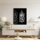 Esta arte é um lembrete maravilhoso de que "Alá está com os pacientes". Projetado em branco sobre fundo preto para representar a luz e a orientação que recebemos quando temos fé em Alá. Escrito em árabe em estilo caligrafia maravilhoso de Thuluth; Sabereen Inna Allah Mãe'al.