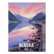 Esta ilustração captura a beleza espantosa do Alasca, EUA com cores vibrantes. Perfeito para decoração domiciliar ou como um presente único, nossos impressões de alta qualidade trazem o esplendor da paisagem do Alasca para qualquer espaço.