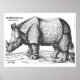 A obra-prima de Albrecht Durer (pronunciada Dyer) "Rhinoceros". Albrecht Durer era pintor e gravador alemão da época do renascimento e geralmente aceito como o maior artista do renascimento do norte. Ele fez sua reputação muito cedo nos seus vinte anos com impressões de suas gravuras.