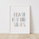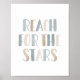 Decore o quarto temático de espaço sideral do seu pequeno com esta impressão 'alcançar as estrelas', apresentando tons azuis e neutros.
