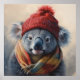 pintura de um adorável coala vestindo um bonitinho chapéu vermelho