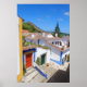 Aldeia mediterrânica de aquarelas com casas brancas e azulejos vermelhos com vista à rua em Portugal