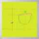 As linhas e formas de abstrato estão espalhadas sobre um fundo verde limão, criando uma sensação de aleatoriedade e espontaneidade. Traços finos e multicoloridos intersetam e curvam-se, formando padrões geométricos e de forma livre.
