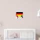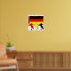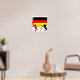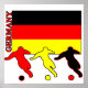 Três jogadores de futebol alemães na silhueta jogam em frente à bandeira alemã. Nome do país: Alemanha está do lado