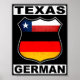 Design alemão do Texas, ao estilo de um legal sinal de estrada americano. O texto Texas German está no topo e no fundo, com a bandeira do Estado do Texas e a bandeira da Alemanha dentro. Excelente para Texanos de ascendência alemã, e para ex-pats no Estado Estrela Solitária.