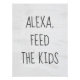 Humorous command for the Alexa device to feed kids on a faded white paint textured background.