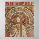 Poster vintage - Art Nouveau Alfonse Mucha - La Trappistine Famosa art nouveau artista Alphonse Mucha criou esta bela jovem de arte chamada "La Trappisine em 1897. Originalmente criada como poster de anúncio de um destilador de Paris, esta arte nouveau poster resistiu à prova do tempo, e ainda hoje é tão linda como no final dos anos 1800. As posters de Alphonse Mucha eram sobre linhas giratórias, belas mulheres, e elementos naturais, e o artista quase definiu o estilo Art Nouveau no final dos anos 1800. La Trappestine é uma jovem graciosa, olhando para nós, contra um fundo de halo e círculos, um fundo que Mucha usava muitas vezes em outras pinturas e posters.