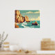 Celebre a beleza de Algarve com esta viagens vintage/cartão postal. Mostrando desfiladeiros dramáticos, praias ouros e cultura surf, esta design é perfeita para os viajantes de verão. Ideal para decoração domiciliar ou como presente para os entusiastas da viagem.