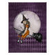 Uma Alice Testemunha de Halloween atravessa sua vassoura através da lua, com o Gato de Cheshire em duas.