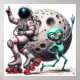 Alienígena Boogie Space Poster Art: Roger Smith. 15,00" x 15,00". Impresso em papel de poster de galeria de 45 lb, 7,5 pontos de espessura impressões Giclee Reprodução de trabalho de arte vibrante Acabamento com uma superfície lisa sem ácido. As tintas baseadas em pigmentos garantem a impressão de alta resolução do espectro de cores do cheio