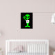 Uma alienígena verde ou silhueta vestindo propaganda alienígena "I Love Earth" e piscando um sinal de paz, mas ele tem um motivo oculto? Será que ele é realmente um fazer capitalista de risco de milhões de esquemas de energia verde?