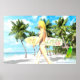 Aloha! Dream Landscape com uma garota nos convidando para surfar e nos divertir, em liberdade de cheio. Desenho criado com o gráfico Computador 3d 2d.